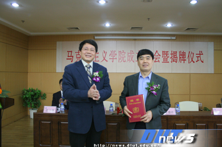 校长欧进萍与省高校工委副书记曲建武共同为马克思主义学院揭牌。欧进萍校长为陈占安教授颁发了兼职教授证书。在全场热烈的掌声中,马克思主义学院正式揭开了历史的新篇章。