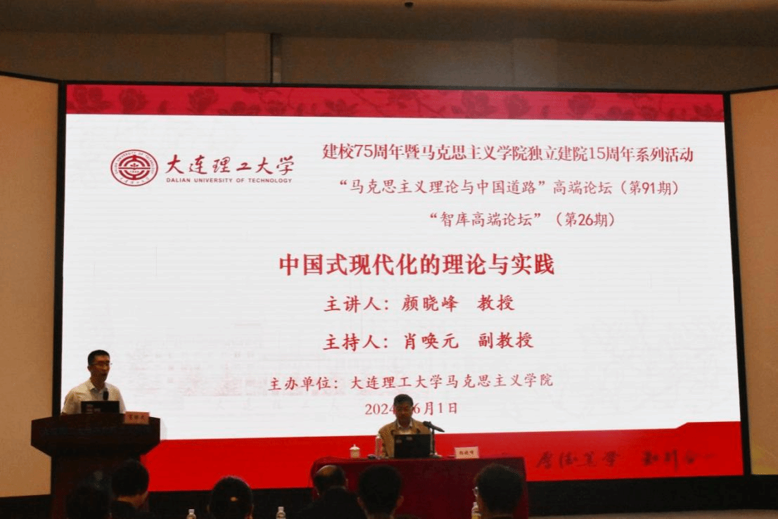 6月1日下午3点30分,大连理工大学马克思主义学院在情景教室举办建校75周年暨马克思主义学院独立建院15周年系列活动、“马克思主义理论与中国道路”学术论坛第91期、“智库论坛”第26期。本次论坛邀请到天津大学学术委员会委员、马克思主义学院院长,博士生导师颜晓峰教授作题为《中国式现代化的理论与实践》的学术报告。本次论坛由马克思主义学院副院长肖唤元副教授主持,马克思主义学院师生共同参加。