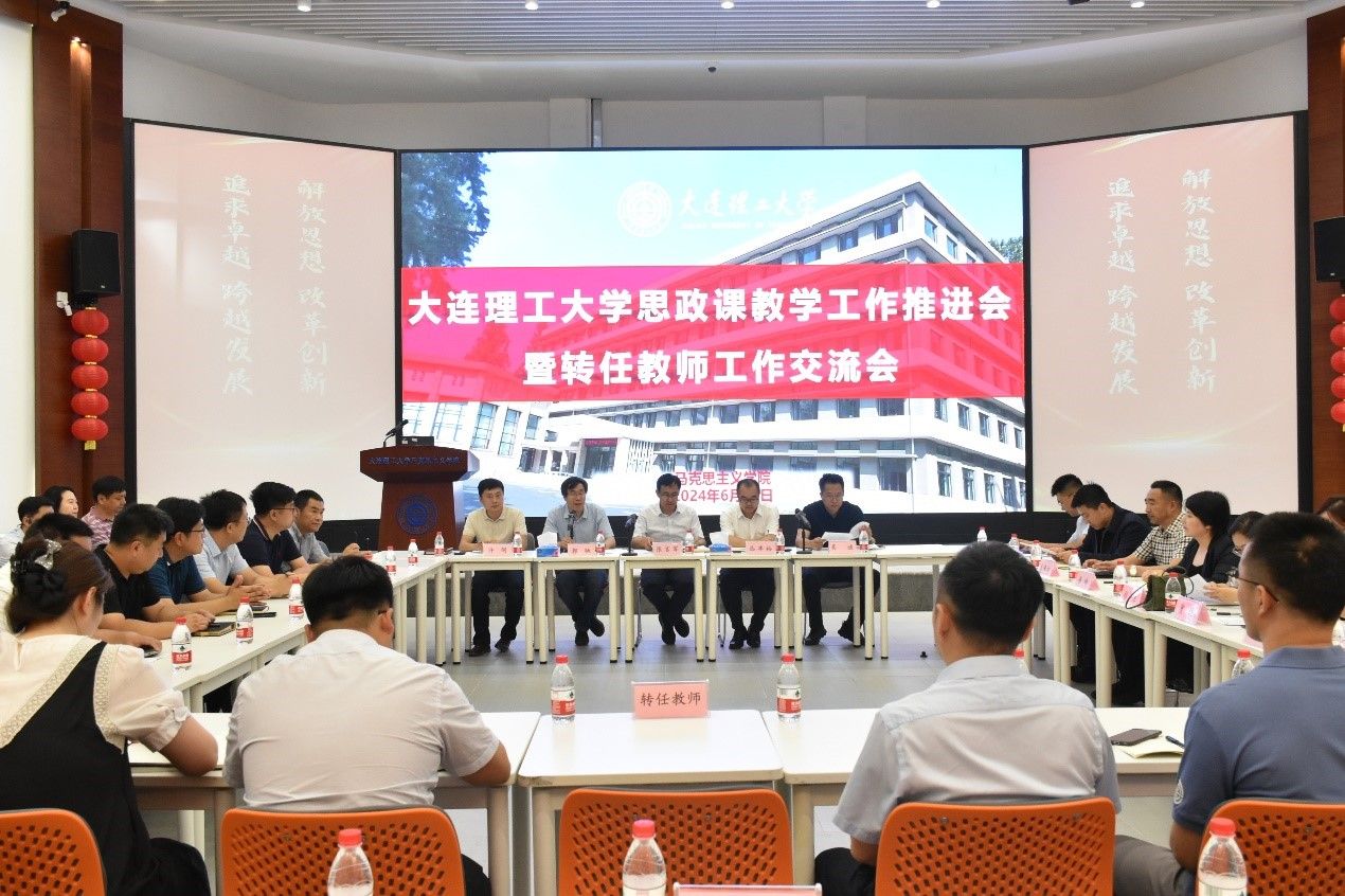 为积极推动学校思想政治理论课教师队伍建设,促进转任教师进一步提升理论和业务水平,进一步发挥转任教师在思想政治理论课教学中的独特优势和积极作用,6月17日下午,大连理工大学思政课教学工作推进会暨转任教师工作交流会在习近平新时代中国特色社会主义思想情景教室召开。校党委副书记、副校长张言军,校党委宣传部、人力资源处、教学运行保障中心、马克思主义学院有关领导,马克思主义学院各教研室主任,全体转任教师出席会议,马克思主义学院党委书记郭驰主持会议。