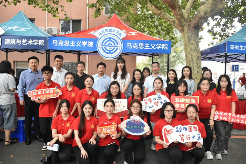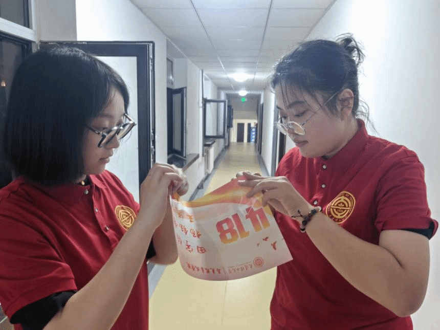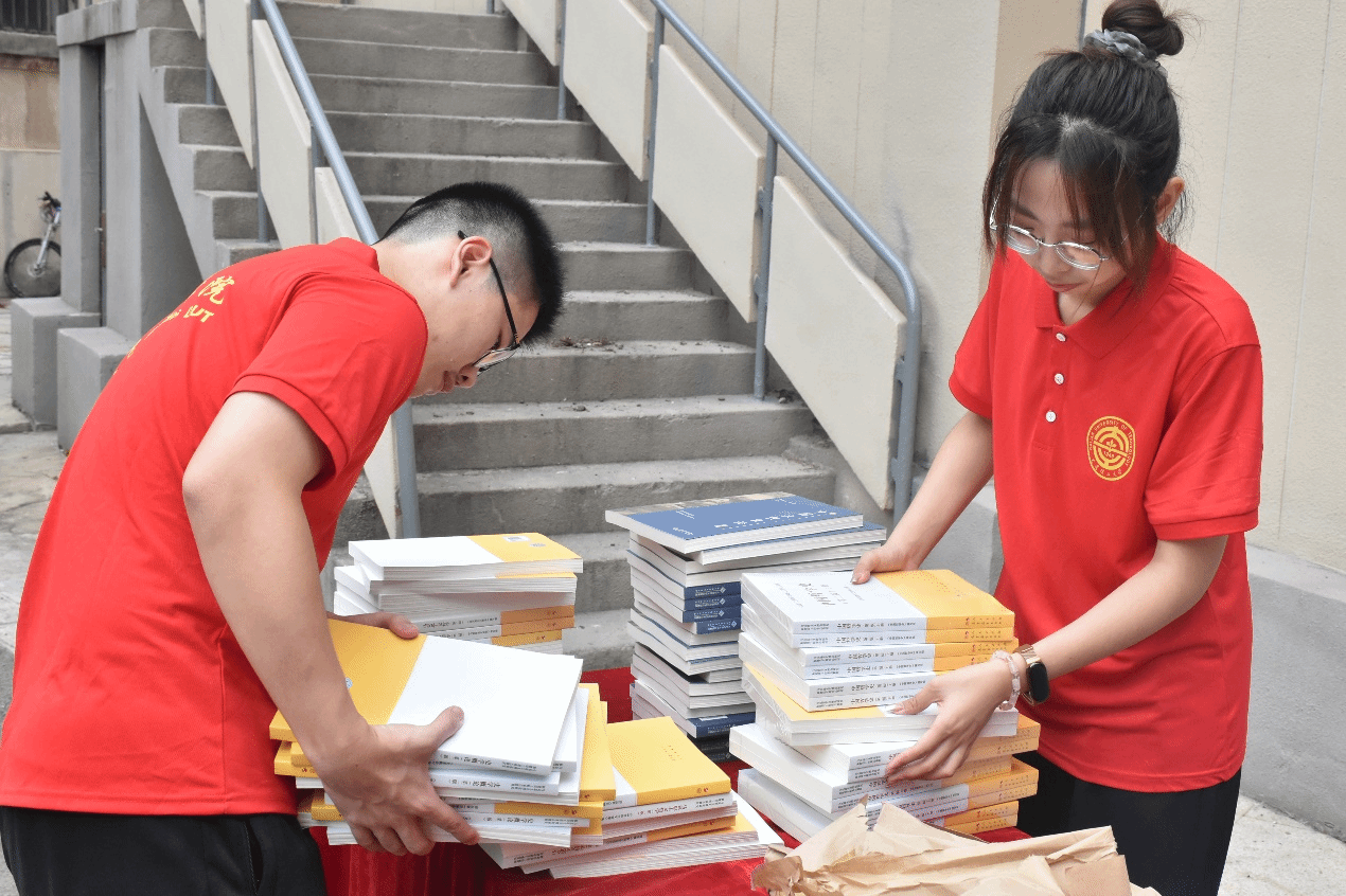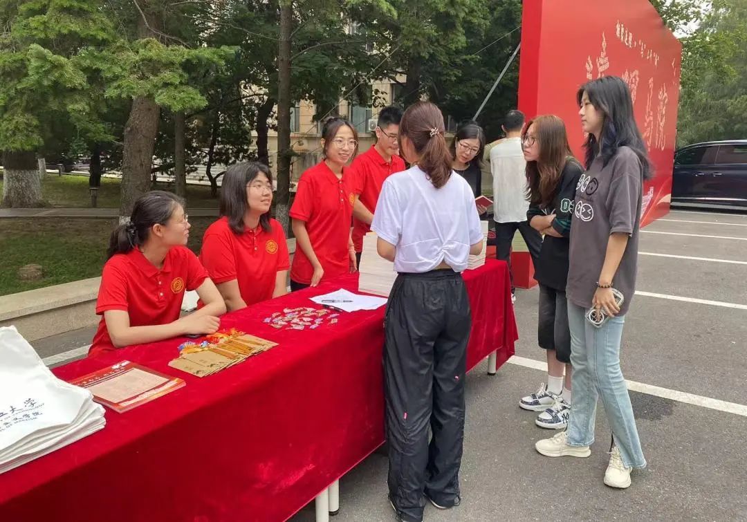 在本科迎新点,学院为专业分流与转专业而来的大二“新生”发放教材与院服,并准备了学院帆布包、精美书签、钥匙链等心意礼品,打造马院“家文化”,传递独属于连理马院的温情。