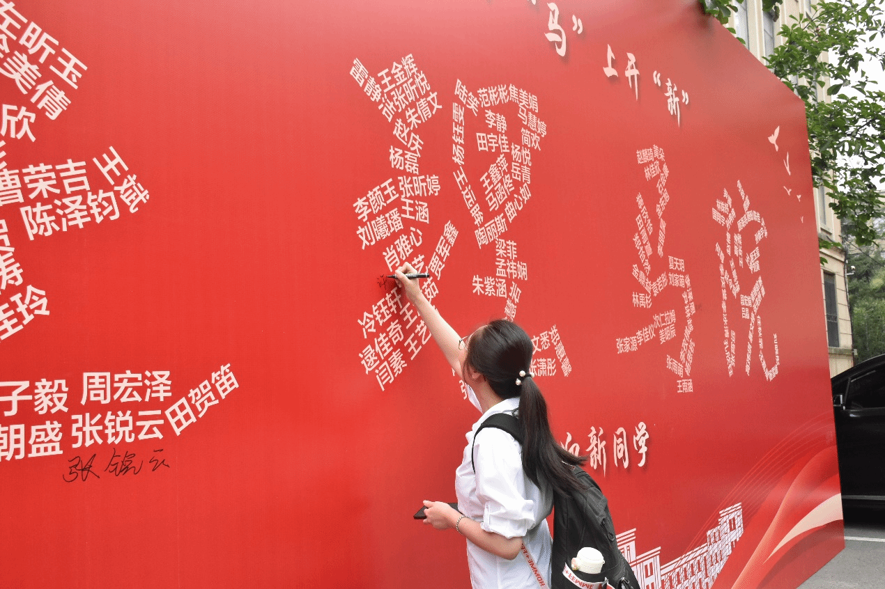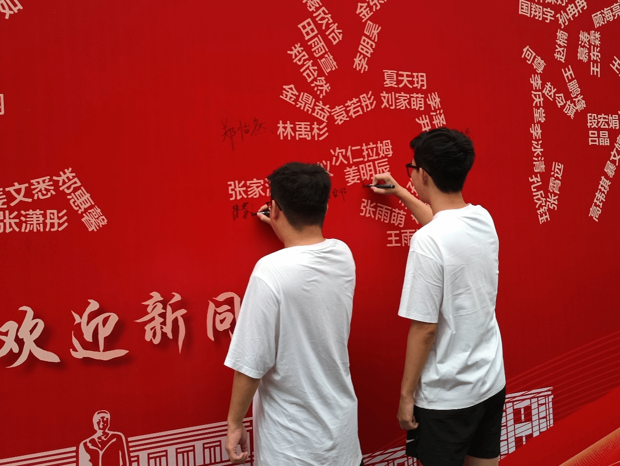 由147名新生姓名定制而成的“连理马院”迎新签名墙前,时光轻抚,一笔一划间,青春的诗篇悄然铺展。姓名错落,他们或踌躇满志,或略带羞涩,但每一笔无不蕴含着对未来的憧憬与向往。
