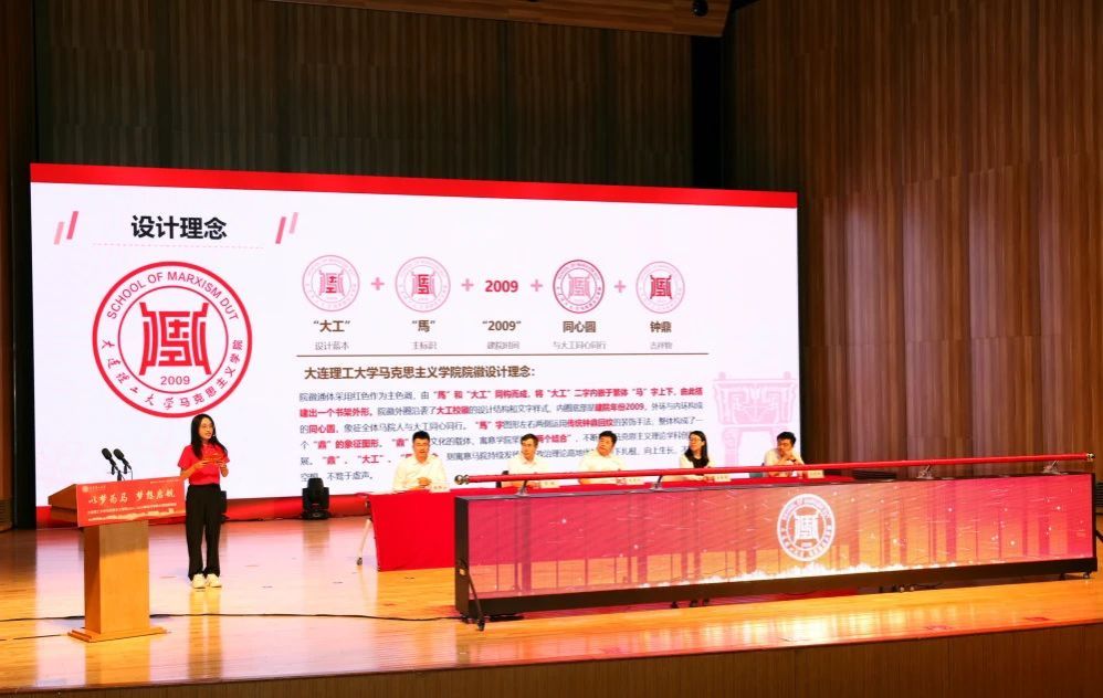 马克思主义学院2021级本科生张龄月同学对院徽寓意和设计理念进行了细致讲解。从院徽的设计结构、文字样式到颜色运用、图形修饰,无不彰显了学院深厚的文化底蕴和专业特色,激励着一代又一代的马院学子奋楫笃行,助力大工“加速跑”。