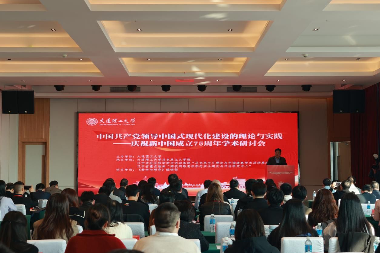 2024年11月9日,由大连理工大学主办,大连理工大学马克思主义学院、辽宁省社会科学学术活动基地“马克思主义理论与中国道路学术活动基地”、辽宁省重点智库“高校网络意识形态安全建设与评价研究中心”承办,《教学与研究》编辑部协办的“中国共产党领导中国式现代化建设的理论与实践——庆祝新中国成立75周年学术研讨会”在大连御府国际酒店举行。来自清华大学、中国人民大学、南开大学、吉林大学、北京师范大学等高校的专家学者和青年师生代表120余人共同参加。