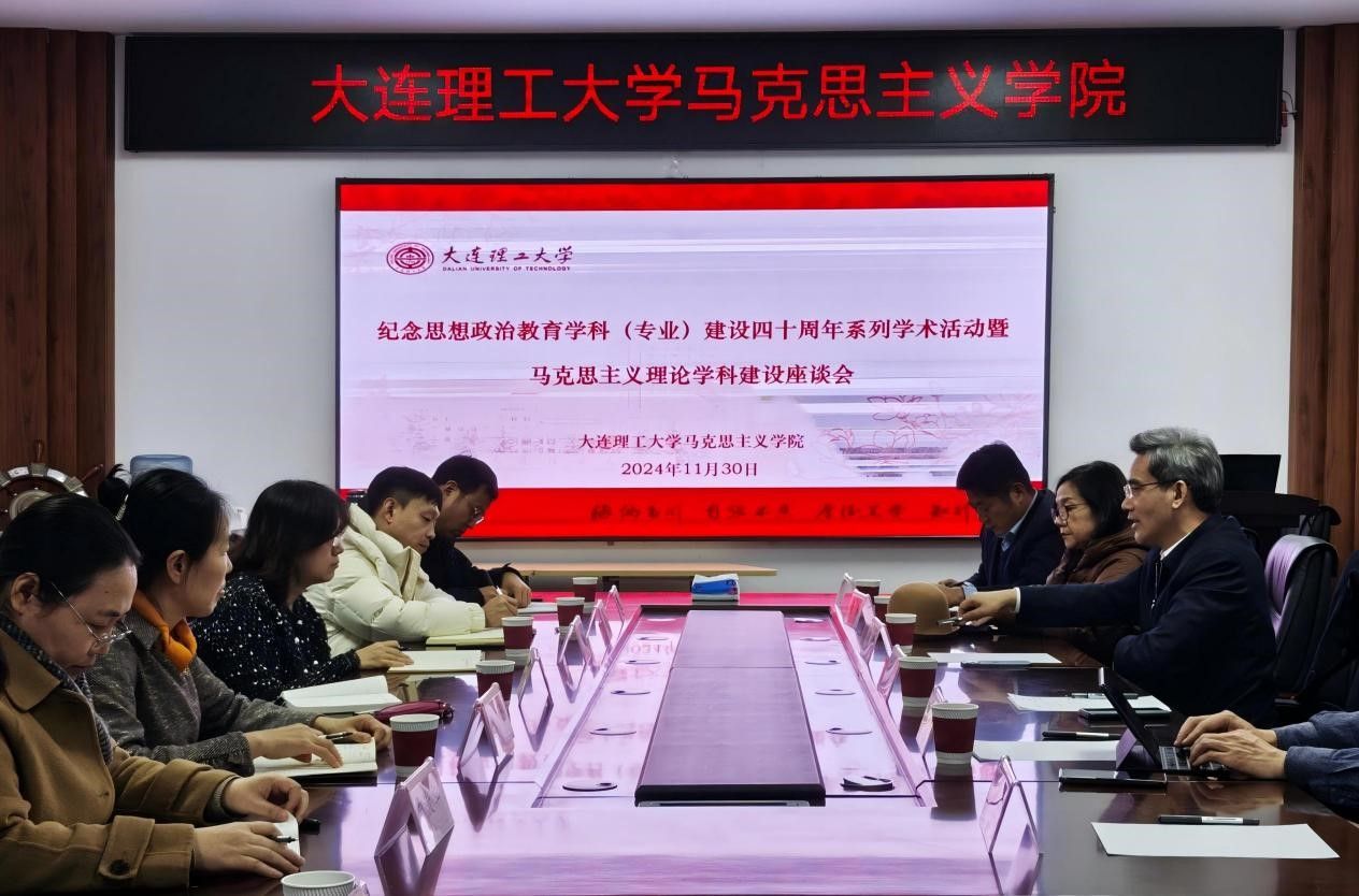 2024年11月30日下午,大连理工大学马克思主义学院在224会议室举办纪念思想政治教育学科(专业)建设四十周年系列学术活动暨马克思主义理论学科建设座谈会。本次座谈会邀请到了国务院学位委员会马克思主义理论、中共党史党建学学科评议组秘书长、清华大学习近平新时代中国特色社会主义思想研究院院长艾四林教授,学科评议组成员、中央党校(国家行政学院)马克思主义学院院长张占斌教授,学科评议组成员、华中科技大学马克思主义学院博士生导师董慧教授莅临指导。本次座谈会由马克思主义学院院长刘志礼教授主持,马克思主义学院领导班子成员、各学科点负责人以及马克思主义基本原理、国外马克思主义研究方向教师共同参加。