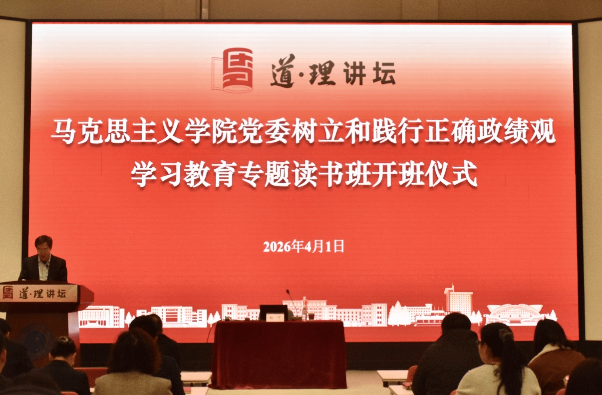 为深入贯彻党的二十大和二十届历次全会精神,推进树立和践行正确政绩观学习教育走深走实,4月1日下午,马克思主义学院党委举办树立和践行正确政绩观学习教育专题读书班开班仪式。学院党委委员、党支部全体支委、研究所所长、教研室主任、学生代表等百余人参会,学院党委书记郭驰主持开班仪式。