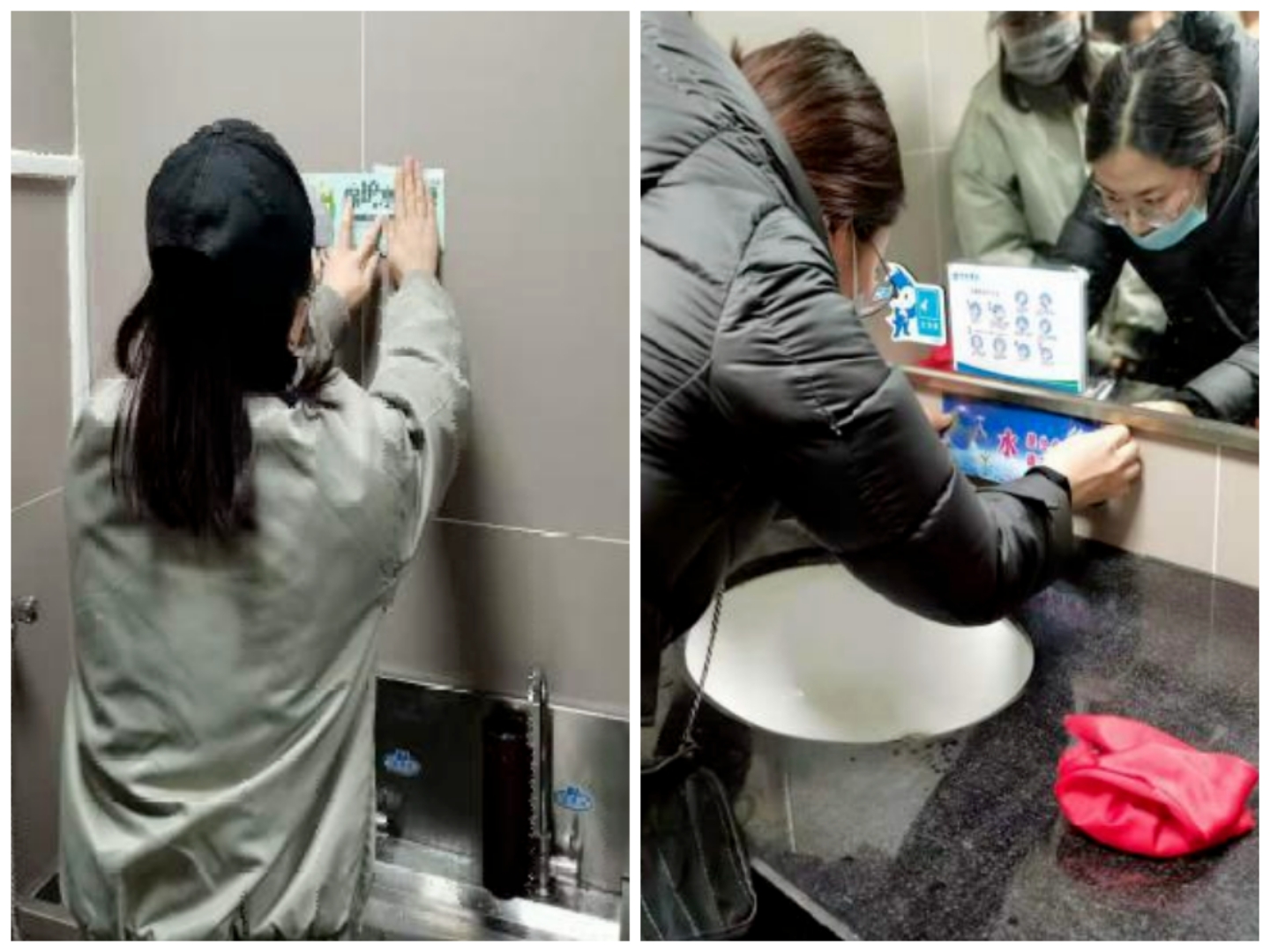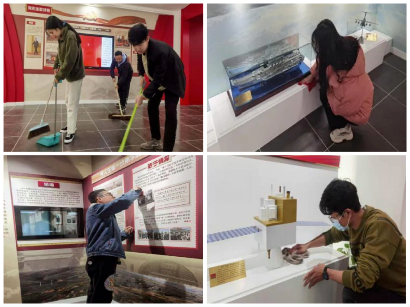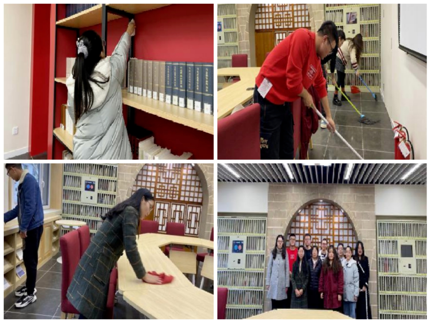 之后,在实践部工作人员引导下,同学们被分成五个小组开展劳动活动,分别负责马院224、323会议室、情景教室、浸润回廊和研读书屋的卫生打扫以及学院三楼卫生间区域的节水标语粘贴,为建设清洁美丽的马院做出了自己的贡献。