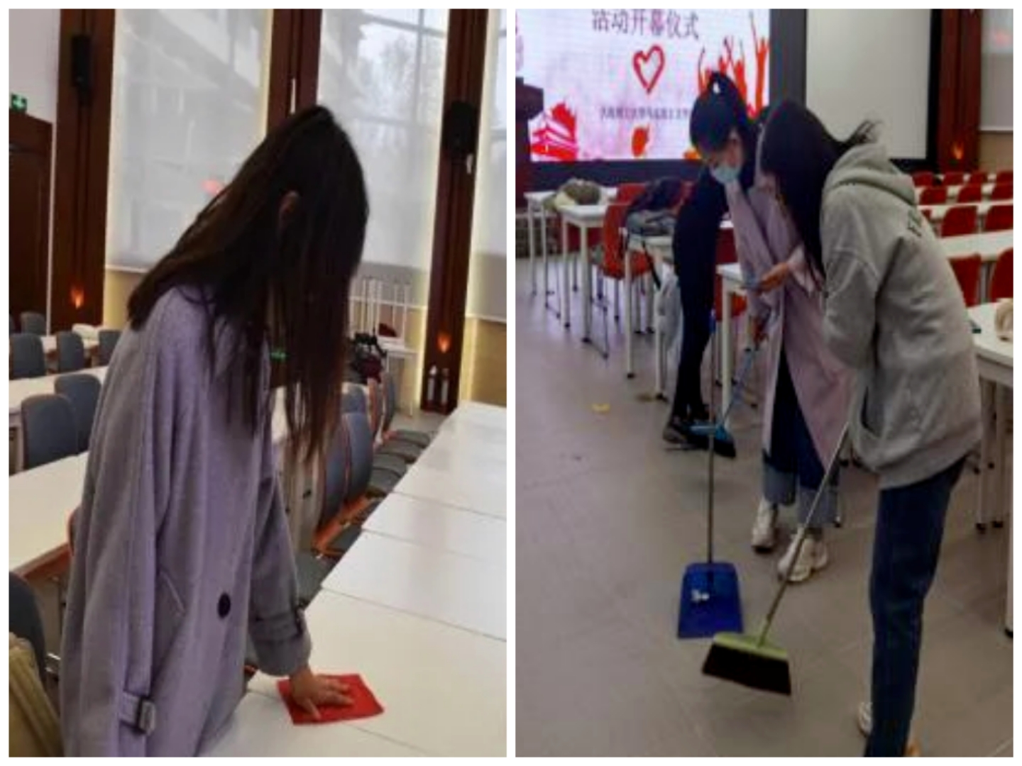 为贯彻落实党和国家的教育方针,落实立德树人根本任务,助力培养德智体美劳全面发展的新时代人才,号召广大研究生同学以劳树德、以劳增智、以劳强体。11月21日上午9点,马克思主义学院研究生会实践部在习近平新时代中国特色社会主义思想情景教室举办了以“携手志愿劳动 共建美丽马院”为主题的劳动教育活动。参加本次劳动教育活动的全体人员在马克思主义学院情景教室集合并进行了现场和志愿汇APP签到,活动正式开始。