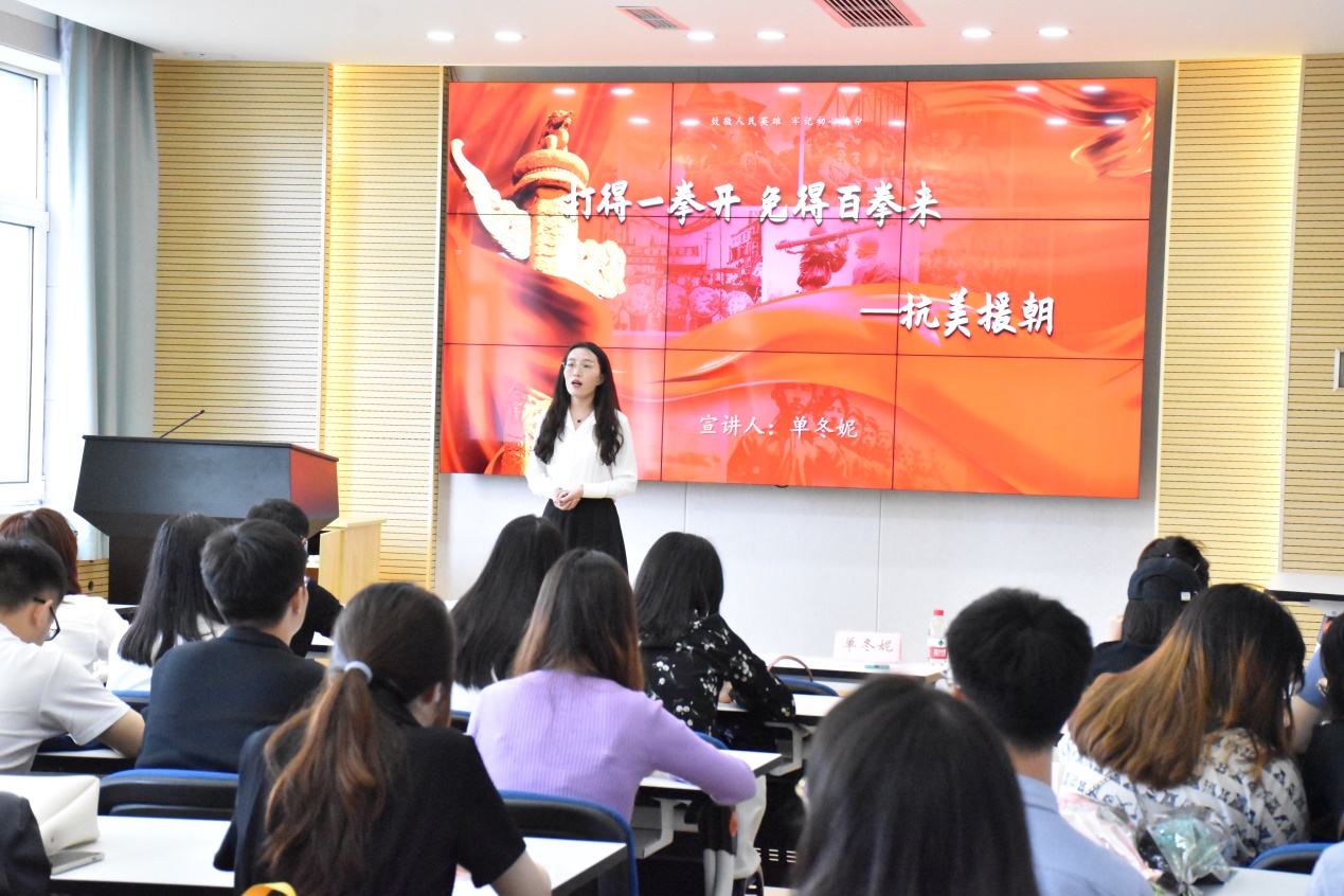 单冬妮以《打得一拳开,免得百拳来》为题,从中国参加抗美援朝的历史背景着手,分析了中国人民参加抗美援朝战争的根本原因、重要原因和直接原因,着重介绍了“五大战役”中的上甘岭战役。她以小事为切入点,讲述了抗美援朝战争的艰巨性,号召与会党员自觉传承和弘扬伟大的抗美援朝精神,为实现中华民族的伟大复兴而奋斗。