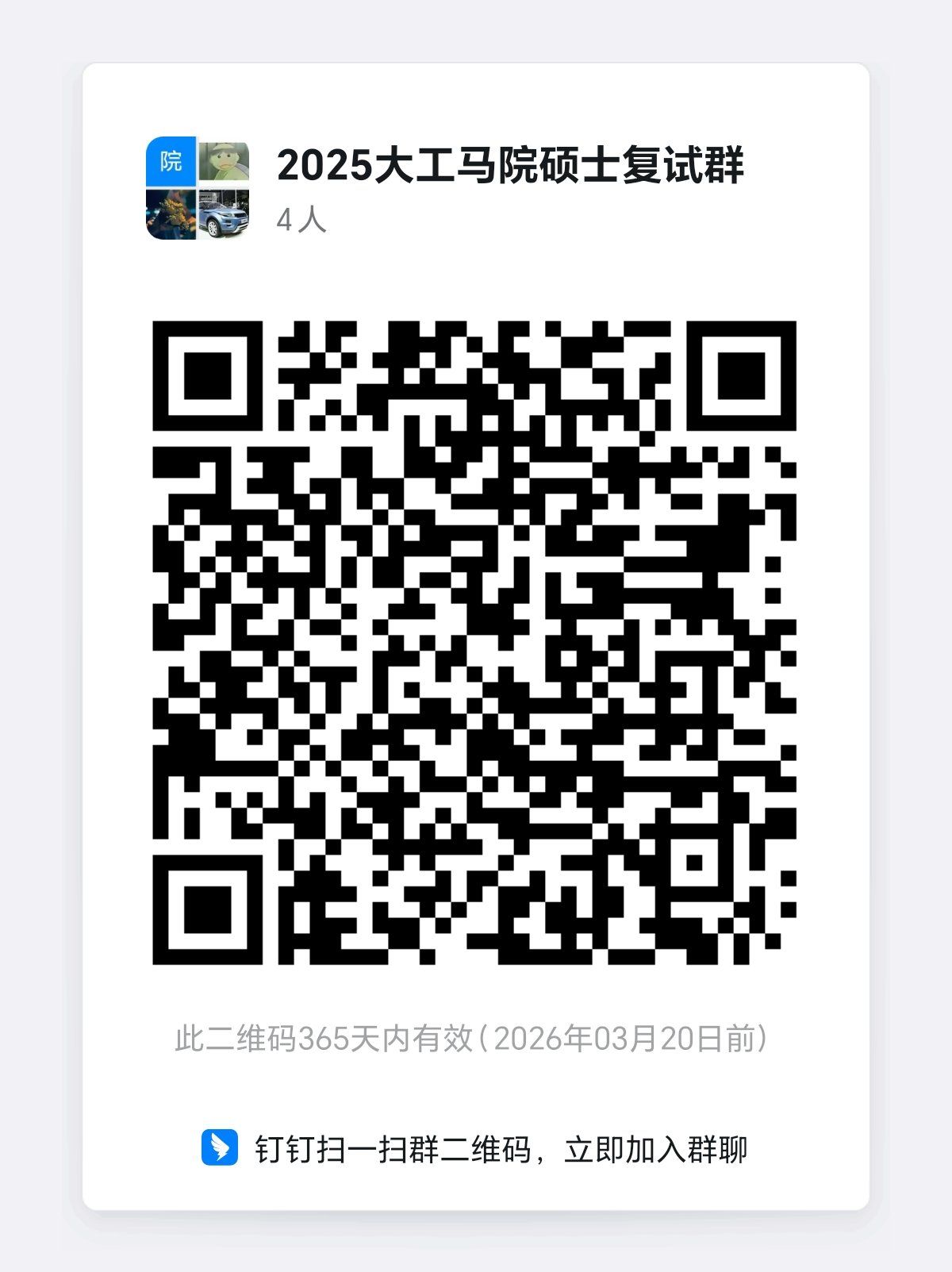 请参加复试的考生3月25日12:00前加入钉钉群(2025大工马院硕士复试群)群号117440003518,申请入群时请备注考生姓名。(入群后请将群昵称修改为真实考生姓名,按加群顺序依次审核通过)
