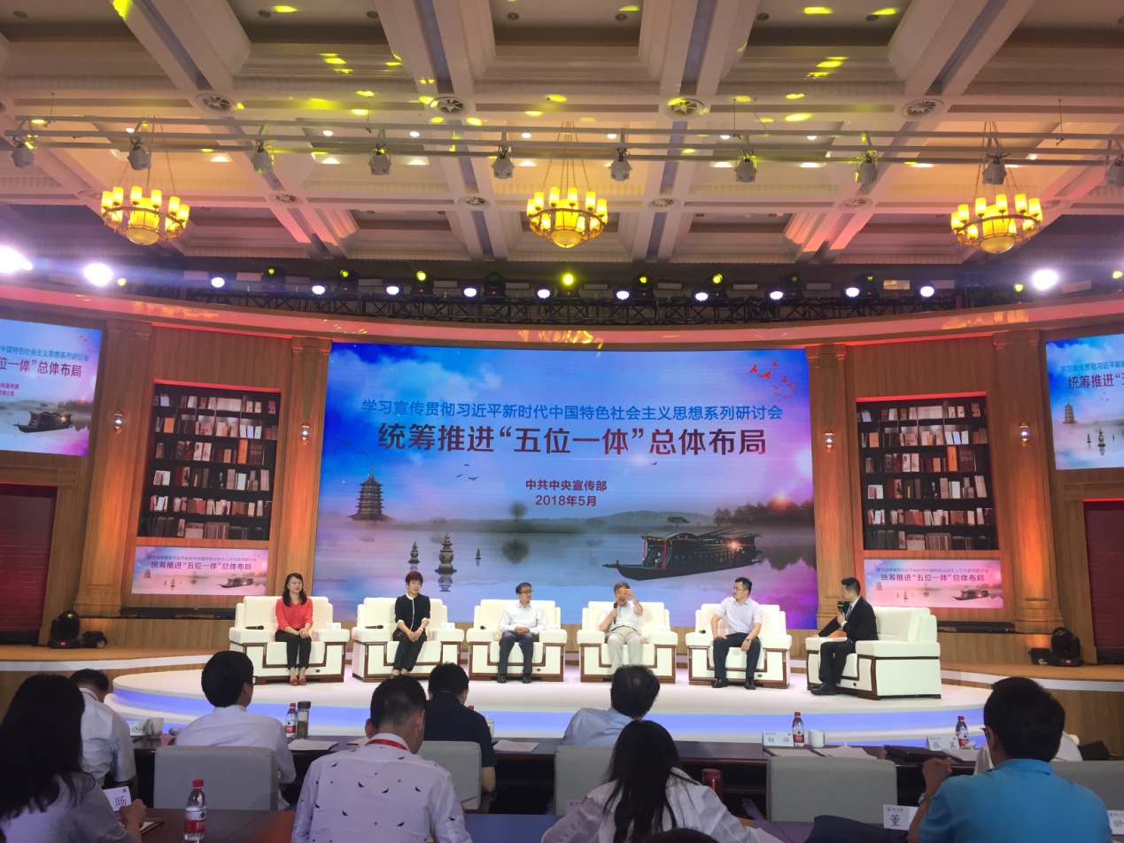 研讨会上,中央文明办专职副主任、中宣部副秘书长、理论局局长夏伟东,从统筹推进“五位一体”总体布局的形成过程、重大意义、主要内容、战略目标、实施路径等展开论述,对习近平新时代中国特色社会主义思想关于“五位一体”总体布局作了深刻分析和系统阐述。对于此次研讨会,夏伟东给予了高度评价,认为会议主题突出、探讨深入、气氛活跃,进一步深化了对习近平新时代中国特色社会主义思想的认识,取得了一批重要的成果,达成了预期的目标。