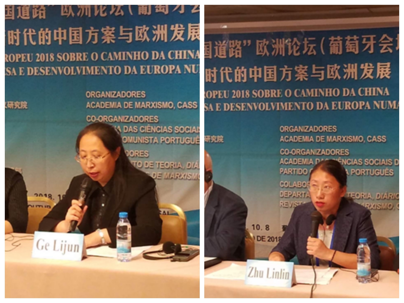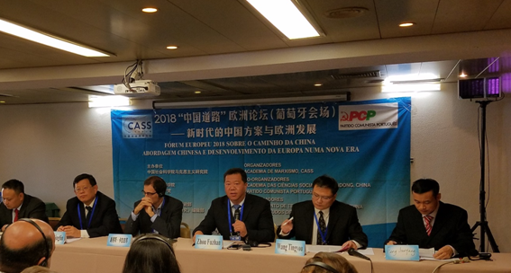 10月8日,“2018中国道路欧洲论坛(葡萄牙会场)”在里斯本召开。此次论坛由中国社会科学院马克思主义研究院、葡萄牙共产党中央委员会共同主办,山东社会科学院协办。本届论坛的主题为“新时代的中国方案与欧洲发展”。中国社科院马克思主义研究院党委书记、院长邓纯东,葡萄牙共产党中央书记处成员、国际部部长佩德罗•盖莱罗致辞并总结,葡萄牙共产党中央总书记热罗尼莫•德索萨,葡萄牙共产党中央政治委员会委员安赫洛•艾维斯以及来自中国社会科学院、教育部高等学校社会科学发展研究中心、中国人民大学、北京师范大学、中国政法大学、山东社会科学院、华东政法大学、东北师范大学、内蒙古财经大学、大连理工大学、江苏师范大学、广西大学等全国23所高校和科研院所的学者专家参加会议。我院周福战、陈晓晖、刘志礼、葛丽君、朱琳琳五位教师代表学校参加会议并作大会主题发言。