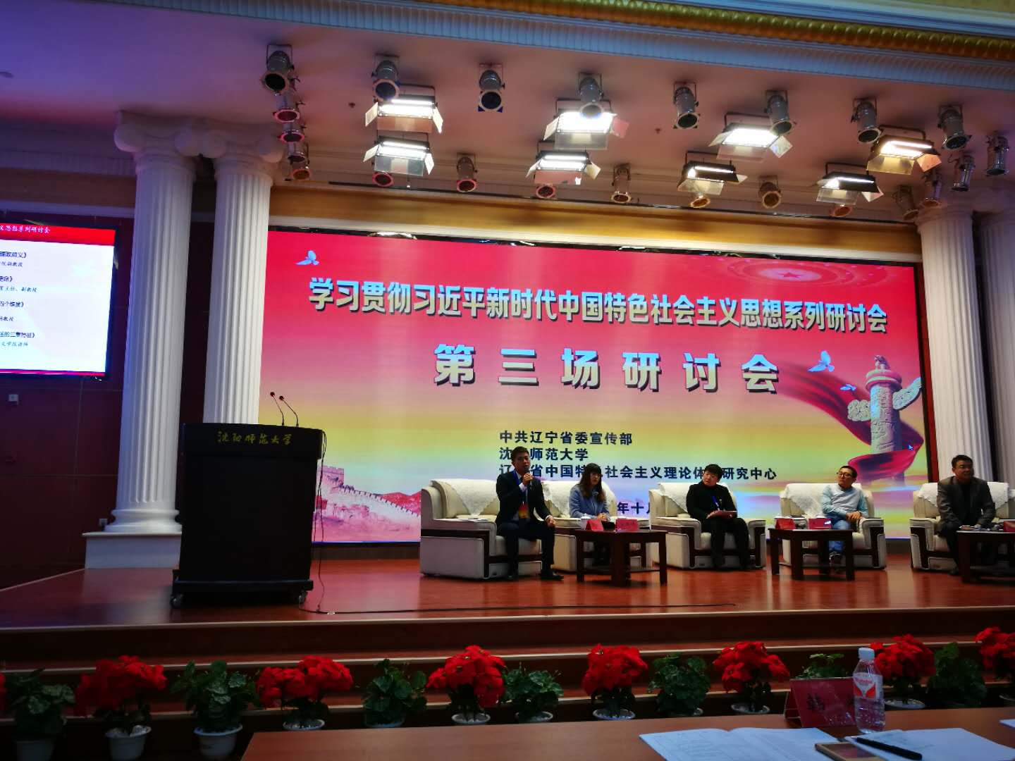 2018年10月19日,我院陈晓晖教授和张存达老师参加了由辽宁省委宣传部、辽宁省中国特色社会主义理论体系研究中心、沈阳师范大学马克思主义学院主办的“学习习近平新时代中国特色社会主义思想”第三场研讨会。本次会议主题为“坚定文化自信,推动社会主义文化繁荣兴盛”,辽宁省委宣传部、各市委宣传部相关负责人,省内各中国特色社会主义理论体系研究中心负责人,省内各高校马克思学院(思政部)教师100余人参加了会议。