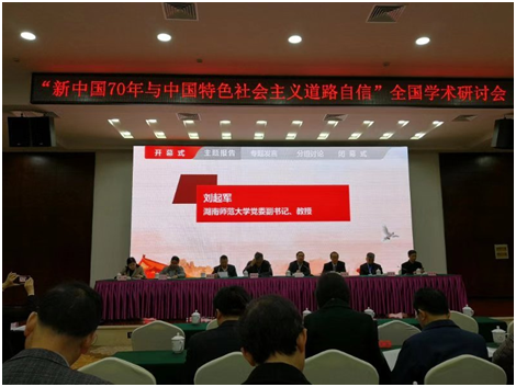 2019年3月15日至17日,全国高校马克思主义理论学科研究会主办的“新中国70年与中国特色社会主义道路自信”全国学术研讨会在湖南长沙召开,来自北京大学、中国人民大学等高校及科研院所的专家学者120余人参加了本次学术研讨会。湖南师范大学党委副书记刘起军教授在开幕式上致辞,全国高校马克思主义理论学科研究会副会长、中山大学马克思主义学院钟明华教授在开幕式上讲话。开幕式后,上海交通大学马克思主义学院陈锡喜教授、复旦大学马克思主义学院顾钰民教授等六位专家学者分别进行主题报告。