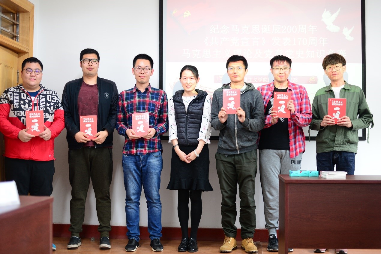 为纪念马克思诞辰200周年、《共产党宣言》发表170周年,5月16日下午马克思主义学院博士生党支部在学院515会议室举办马克思主义理论及党章党史知识竞赛。马克思主义学院党委组织员胡丰彦出席了本次竞赛。