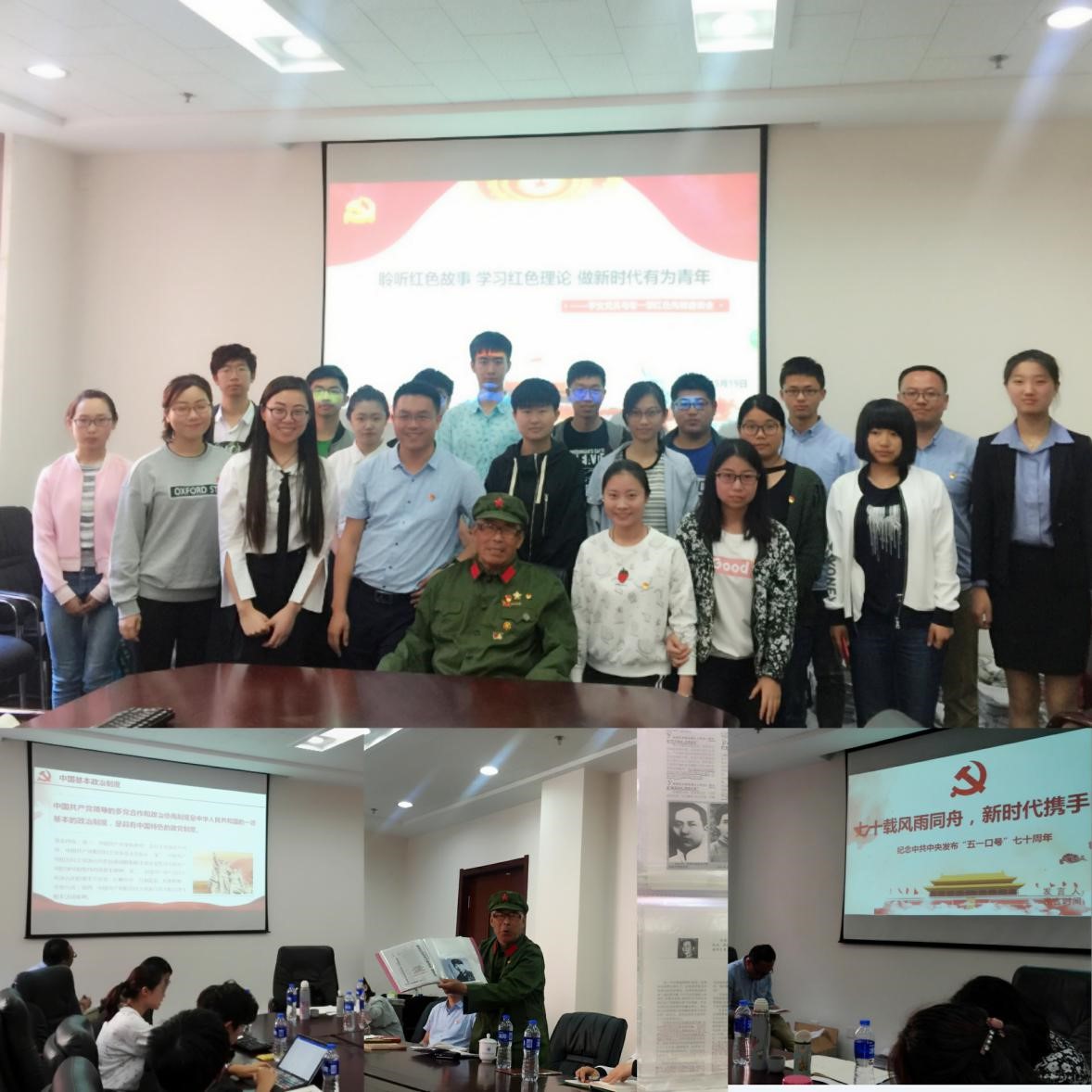 王明智老人讲座结束后,我院研究生党员段书玥和化环生学部四位本科生党员代表分别主讲了题为《纪念“五一口号”七十周年》、《“四个自信”之文化自信》、《浅谈红色基因》、《建设现代化经济体系——适应新时代的主动选择》、《新时代·新目标·新征程》的“微党课”。党课结束后,中国近现代史研究所支部书记屈宏老师对党课做了点评,肯定了学生党员理论学习的进步,同时也指出了党课中存在的小问题和相关问题的正确看法,希望所有党员进一步深化政治理论学习,不断提升自身党性修养,勇做时代弄潮儿。