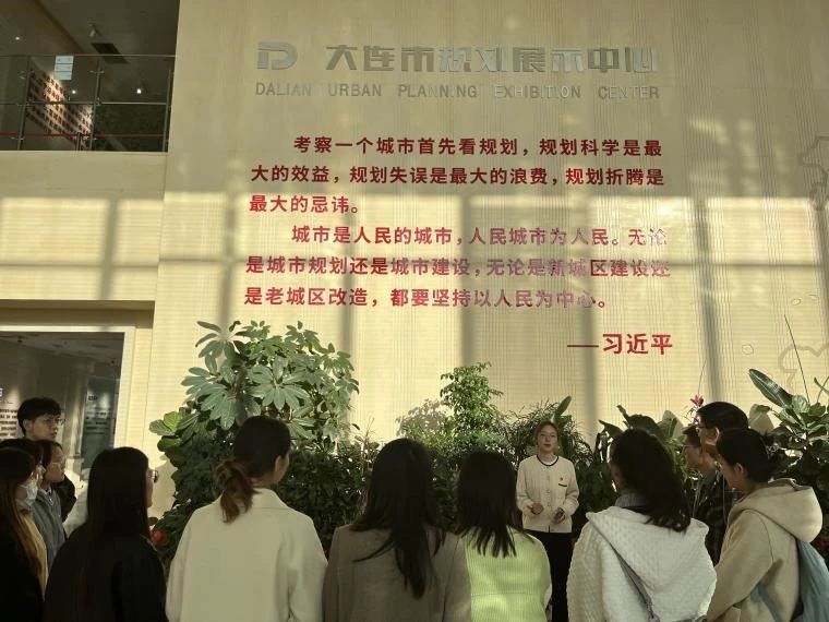 考察一个城市首先看规划。大连规划展示中心恢宏大气的外观设计、设计有序的内部结构,内涵丰富的图文展示,现代化的数字沙盘展示和纪录片等,向我们展示了大连这座城市的过去、现在和未来,使我们了解了大连的历史变迁和文化底蕴,领略了大连“浪漫之都、创新之城”的无穷魅力和发展活力,知晓了大连城市规划建设的发展蓝图,更增添了作为新时代青年的使命感和责任感,深刻体悟到必须用过硬的专业本领和高度的责任担当助力大连发展,为东北振兴贡献微薄之力。