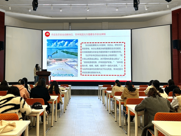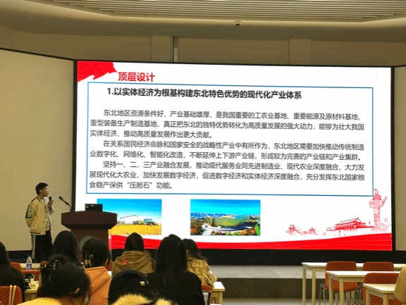 本次主题党日活动邀请大连理工大学马克思主义学院“星火计划”研究生宣讲团成员苗靖姗同志为两支部党员作“东北振兴新突破 青年奋斗正当时”的主题宣讲。苗靖姗同志在宣讲中强调了东北地区在维护国家“五大安全”中的战略地位,从新的时空坐标、新的重大机遇、新的着力方向这三个“新”视角带领全体党员分析新时代东北振兴新的突破点和着力点,并向在场的党员发出争做解放思想、改革开放、学习提升的先锋、练就过硬本领、锤炼品德修为、为东北地区重振雄风积蓄力量的号召。