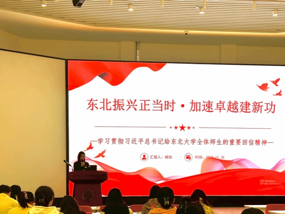 硕士生第五党支部的郭明冬同志从“构建具有东北特色优势现代化产业体系”这一具体要求切入,领学了习近平总书记在推动新时代东北全面振兴座谈会上的重要讲话精神,论述了为何进行东北振兴、东北振兴何为等内容,他表示,习近平总书记的讲话为东北走出一条高质量发展、可持续振兴的路子指明了前进方向。杨怡同志领学了习近平总书记给东北大学全体师生的重要回信,指明了培养高素质人才的重要意义及青年在新时代东北振兴中的使命担当。