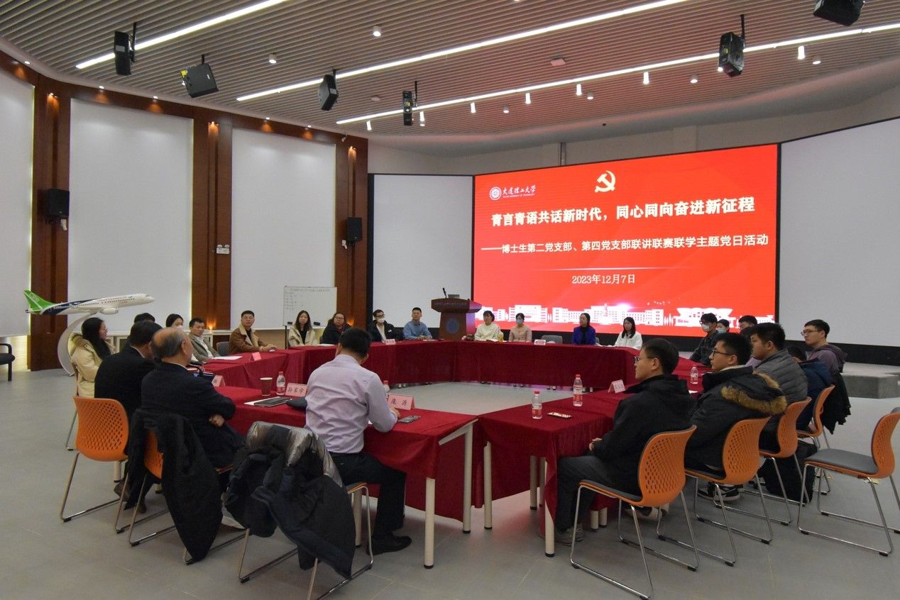 12月7日上午,马克思主义学院博士生第二、第四党支部举办“青言青语共话新时代,同心同向奋进新征程”联讲联赛联学主题党日活动,教育部直属高校党建工作联络员、东北大学党委原书记孙家学莅临指导,学校党委组织部副部长庞源、马克思主义学院党委书记郭驰以及支部全体党员参加活动。