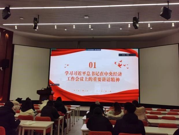 在本环节,支部党员师春艳同志带领大家共同学习习近平总书记在中央经济工作会议上的重要讲话精神。中央经济工作会议对于凝心聚力、坚定信心、做好明年经济工作、扎实推进中国式现代化具有重大意义。师春艳同志表示,要把坚持高质量发展作为新时代的硬道理,不折不扣贯彻落实中央各项决策部署,抓住一切有利时机,利用一切有利条件,持续推动经济实现质的有效提升和量的合理增长。