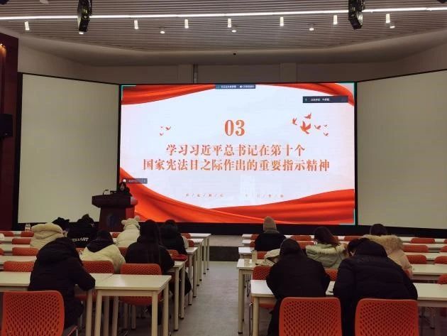 在本环节,孙一丹同志带领大家学习习近平总书记在第十个国家宪法日之际作出的重要指示精神。新征程上,要坚定维护宪法权威和尊严,推动宪法完善和发展,更好发挥宪法在治国理政中的重要作用。通过学习研讨,同志们感悟颇深,表示在日常生活中,当以学为先,学思践悟,努力学习宪法及各项法律法规,坚决维护宪法权威,积极践行宪法精神,坚持法治思维和法治方式,以实际行动践行法治精神。
