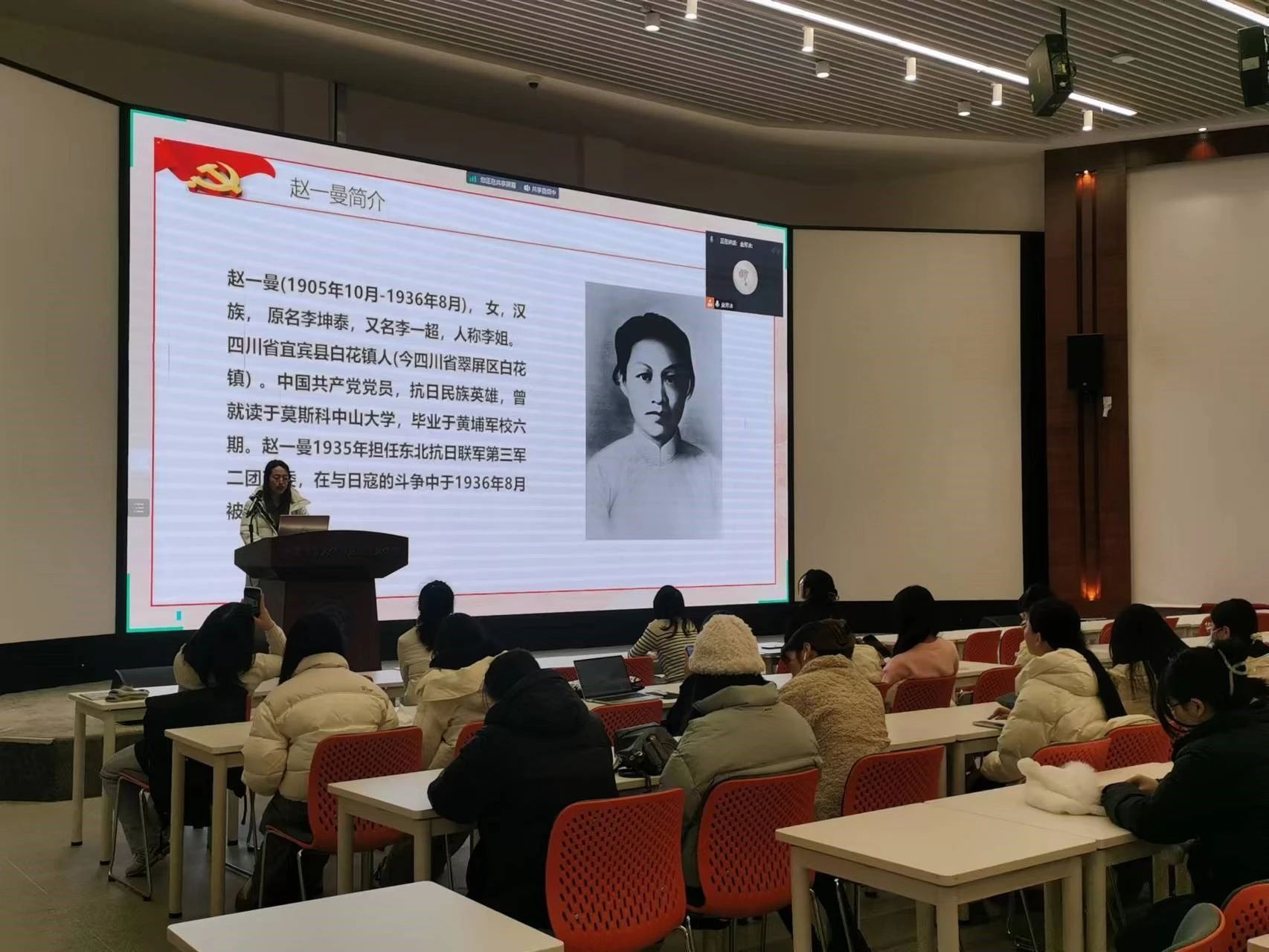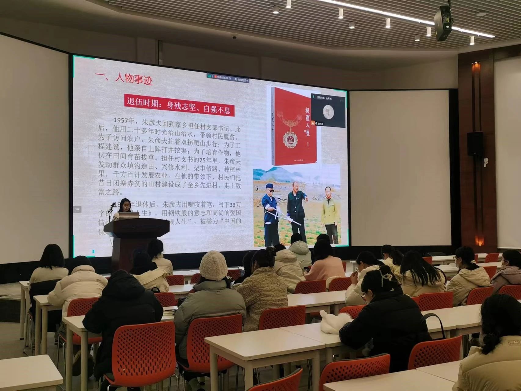 王宇同志分享英雄人物赵一曼的故事。作为一名优秀共产党员,赵一曼舍子从戎,奔赴东北。受伤被俘后,她始终保持崇高的革命气节和无畏的民族气概,最终在留下给儿子的绝笔信后英勇就义。之后,赵蕊同志分享燃烧生命的不屈斗士——长津湖战役幸存者朱彦夫的故事。朱彦夫14岁参军入伍,在抗美援朝战场上失去了四肢和左眼,但他却凭借顽强的毅力重新“站”了起来,回到家乡山东省沂源县张家泉村担任村党支部书记长达25年,把一个贫穷落后的小山村建成了远近闻名的先进村。
