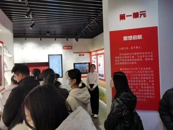 在讲解员的引领下,硕士生第三党支部和团支部的全体同志参观了“习近平新时代中国特色社会主义思想情景教室”。通过实地参观,全体同志一同沉浸式地感受了中国共产党百年奋斗历程,实现了“大”理论与真情感的深度融合,同时也激励各位同志要经常性地接受精神洗礼和党性锤炼,实现思想理论的碰撞和党性修养的升华,激发奋进新时代的壮阔情怀,筑牢坚实的信仰根基。