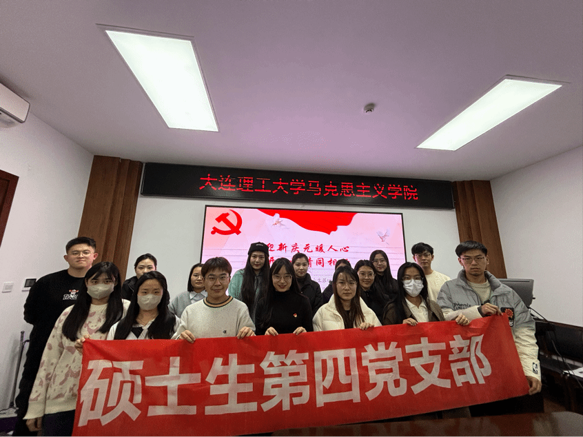 在新的一年即将来临之际,为进一步强化党员教育管理,增强支部全体党员的凝聚力和归属感,充分发挥基层党组织战斗堡垒作用,12月28日下午,大连理工大学马克思主义学院硕士生第四党支部组织开展“迎新庆元暖人心,研途温情同相行”主题党日活动。