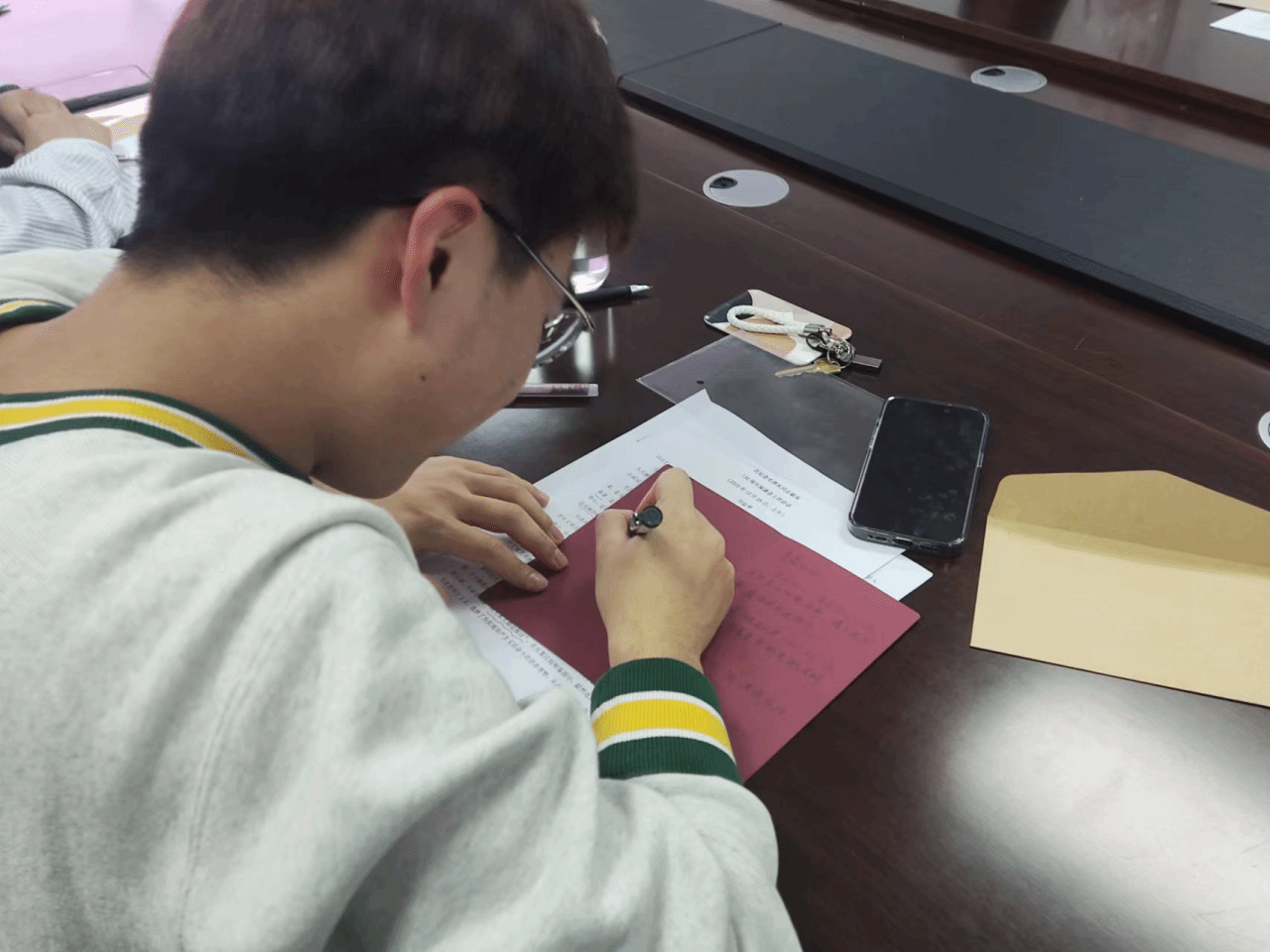 活动第二环节,每位党员在小小的便利贴上写下自己对未来的美好希冀,这些心愿清单有关乎家人平安健康,有关乎自身追逐梦想,也有关乎国家繁荣昌盛。一份份“心愿单”不仅体现了大家对未来的美好期许,更代表着他们自我鞭策、持之以恒想要达成的目标,映射出各位党员逐梦奔跑的家国情怀与个人成长的美好祝愿,汇聚成硕四党支部共同的美好夙愿。