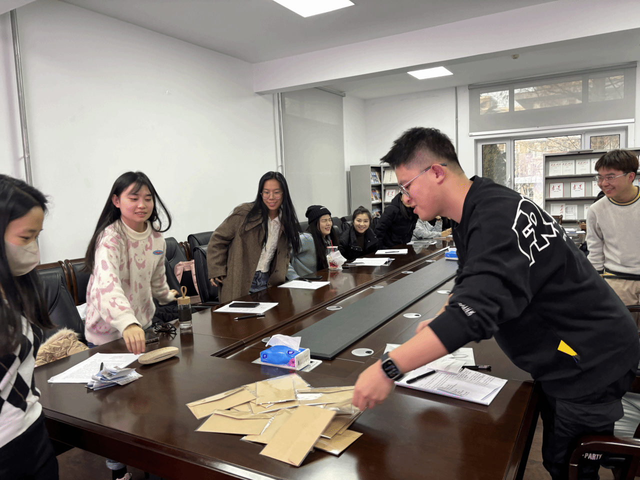 活动第三环节,支部为每位党员精心准备了新春贺卡,每位党员在卡片上匿名写下自己的美好祝福,其中既有对自己的希望,也有对对方的美好祝愿。随后大家把贺卡收集起来,每位党员以随机抽取的方式获得一张专属自己的匿名贺卡,互相交换祝福,一张张精美的卡片中充满了暖暖的心意和浓浓的温情。