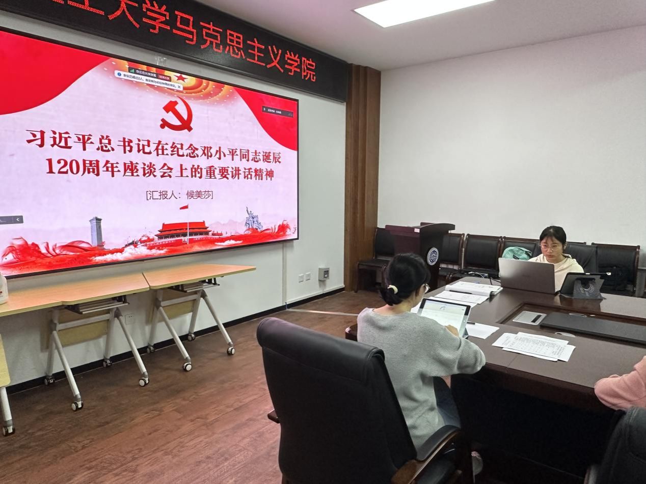 会议最后,为引领支部党员坚定不移听党话、矢志不渝跟党走,支部三位党员代表紧密围绕习近平总书记系列重要讲话和党中央重要会议精神开展理论学习。李沛同志首先领学“深入学习贯彻党的二十届三中全会精神”系列文件,督促全体党员同志将党的二十届三中全会精神入脑入心,并落实到日常学习生活中。接着,郭娟同志领学“习近平总书记在全国教育大会上的重要讲话精神”,带领参会党员深刻学习理解习近平总书记关于教育的重要论述,特别是关于建设教育强国、助推民族复兴的重要意义与发展要求。候美莎同志随之领学“习近平总书记在纪念邓小平同志诞辰120周年座谈会上的重要讲话精神”,引导全体党员同志紧跟中央会议精神,强化理论修养,增强政治定力。