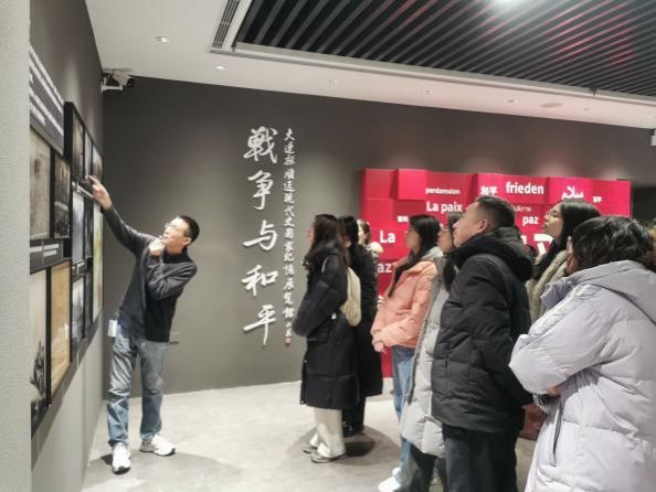 党员们乘车前往大连外国语大学参观“战争与和平—大连旅顺近现代史国家记忆展览馆”。大连外国语大学杨冬老师以“辽东半岛风云紧、漫漫长夜星火明、发展生产为前线和奋楫争先谱新篇”四部分为题展开介绍,讲解了近代以来,大连、旅顺发生的一系列重大历史事件,通过生动的讲述和珍贵的史料,带领大家穿越时空,深入探索近现代旅大地区的历史变迁,讲述在这片土地上曾经发生的战争,讲述大连人民在中国共产党领导下实现和平、保卫和平的英勇斗争,讲述新中国75年来大连人民创造的辉煌业绩,令师生党员受益匪浅。