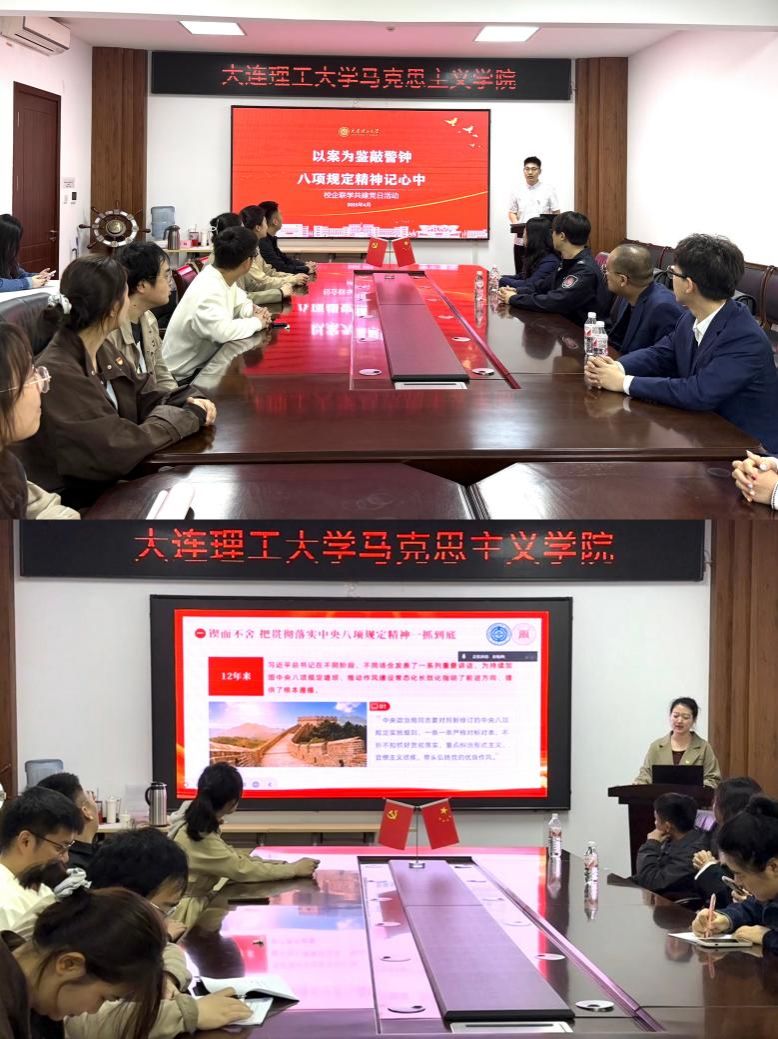为深入贯彻中央八项规定精神学习教育,筑牢拒腐防变思想防线,4月30日上午,大连理工大学马克思主义学院博士生第二、第四党支部和硕士生第一党支部联合大连市普兰店区烟草专卖局开展“以案为鉴敲警钟,中央八项规定精神记心间”党日活动。活动通过校史浸润、党课研学、联学研讨等形式,推动党员同志以严实作风践行初心使命。
