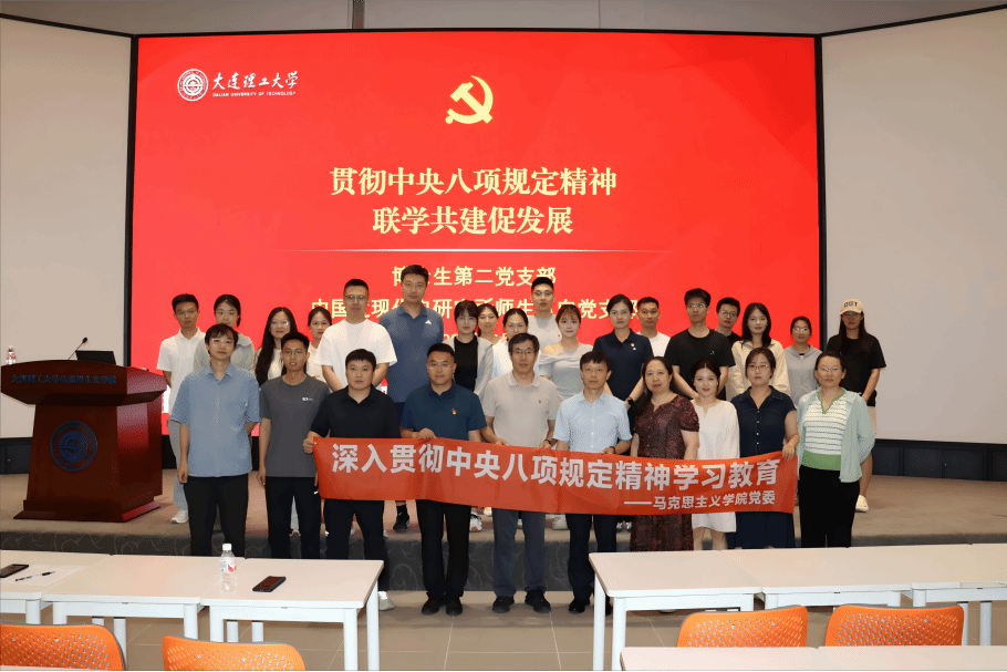 为深入贯彻中央八项规定精神学习教育,推动党员深刻理解和全面掌握习近平总书记关于党的自我革命的重要论述,2025年7月9日下午,大连理工大学马克思主义学院博士生第二党支部和中国近现代史研究所师生纵向党支部联合开展“贯彻中央八项规定精神 联学共建促发展”主题党日活动。活动借助党课研学、案例深度剖析、联学研讨等多种方式,激励党员同志进一步强化纪律观念,提升思想自觉,以严谨扎实的作风推动党的自我革命不断向前。