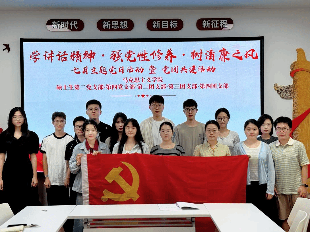 为学习贯彻习近平总书记在二十届中共中央政治局第二十一次集体学习上的重要讲话精神,扎实开展深入贯彻中央八项规定精神学习教育,2025年7月18日上午,马克思主义学院硕士生第二党支部、第四党支部联合硕士生第二团支部、第三团支部、第四团支部,以线上线下相结合的方式于学院224会议室共同开展了“学讲话精神 强党性修养 树清廉之风”主题党日活动暨党团共建活动。本次活动由硕士生第四党支部副书记张怡帆同志主持,活动共有三项议程。