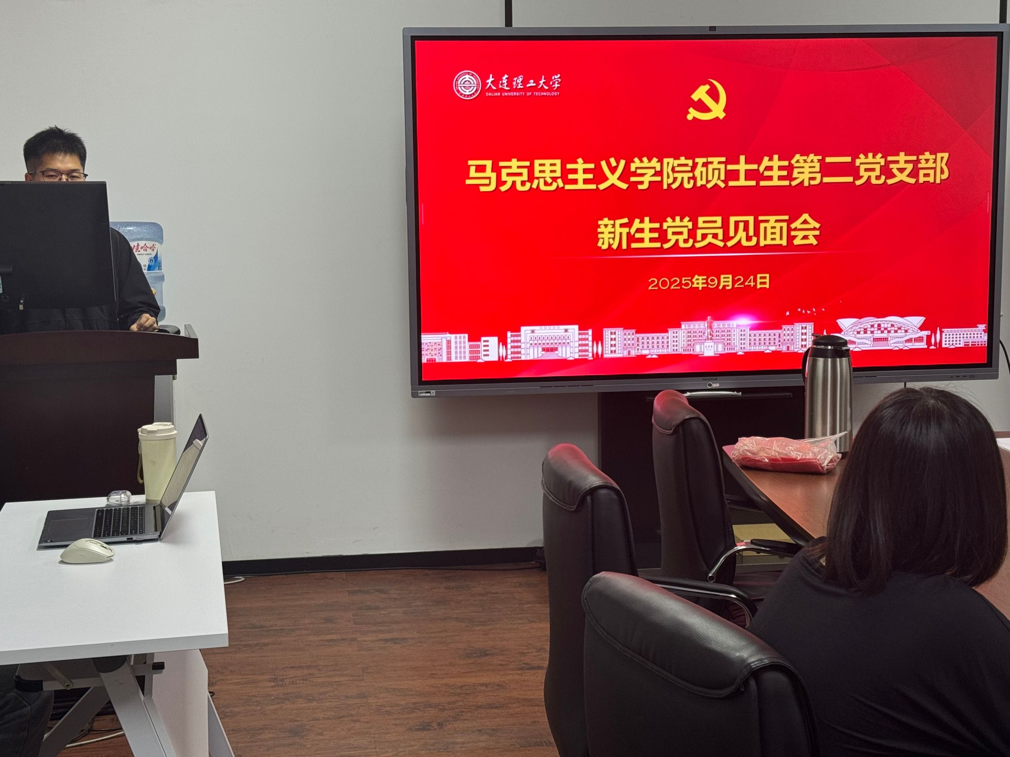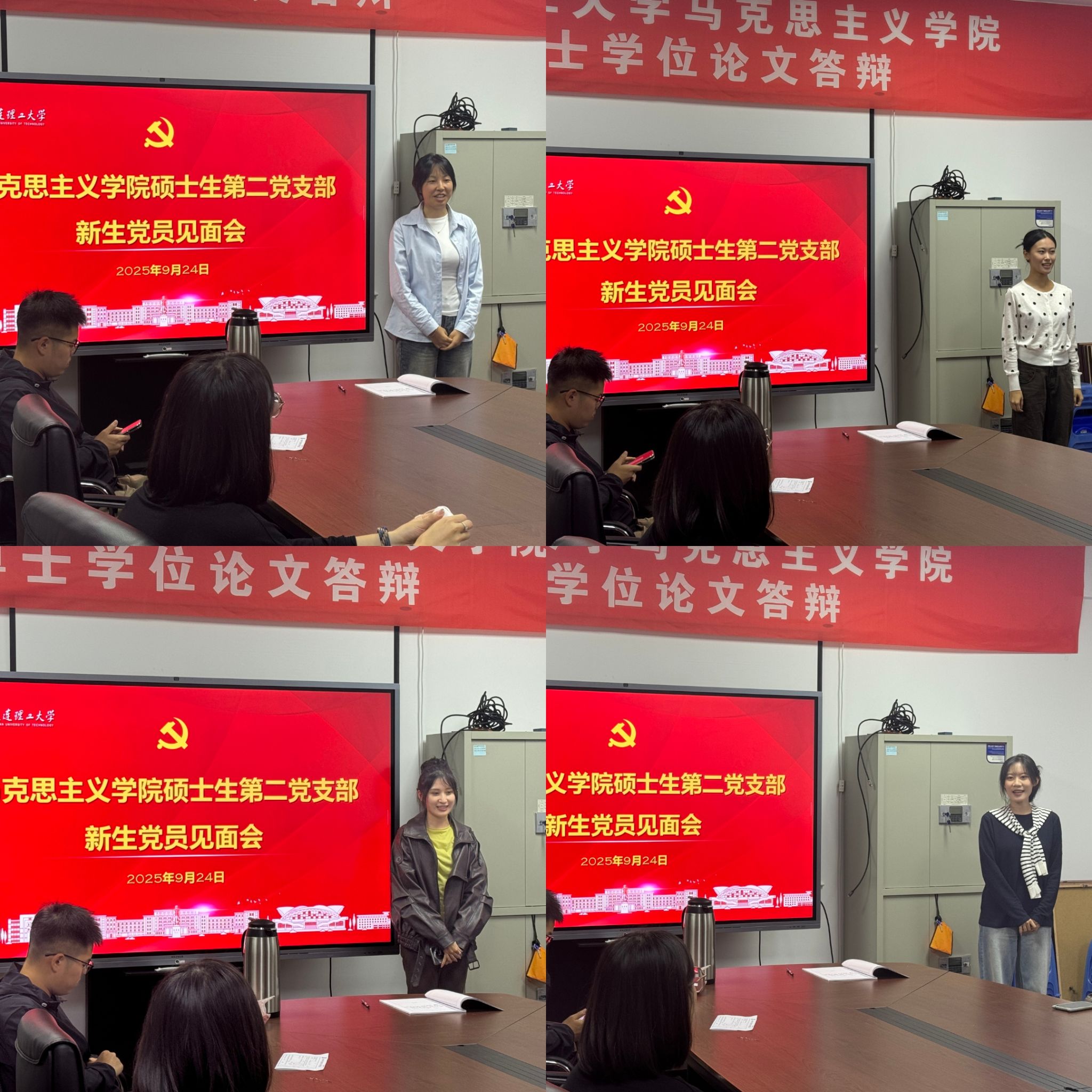 为纪念中国人民抗日战争暨世界反法西斯战争胜利80周年,引导党员传承红色基因、弘扬爱国主义精神,同时增强新生党员的身份认同与组织归属感,马克思主义学院硕士生第二党支部于2025年9月24日在马克思主义学院323会议室组织开展“铭记抗战历史,勇担时代使命”主题党日活动暨新生党员见面会。活动由杨佳硕同志主持,全体党员及入党积极分子参加。