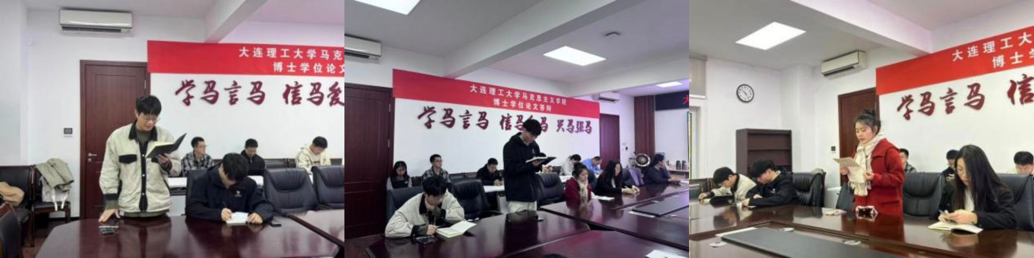 为深入学习贯彻习近平新时代中国特色社会主义思想,持续推进党员教育培训常态化、制度化,马克思主义学院硕士生第三党支部于2025年11月5日开展“深学细悟新思想,青春建功新时代”主题党日活动,组织全体党员围绕2025年党员基本培训第二次集中大课、党的二十届四中全会精神开展集中交流研讨,并进行十一月政治理论学习。
