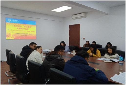2019年10月25日,马克思主义学院博士研究生第一党支部在学院323会议室举行了学习习近平总书记关于“不忘初心、牢记使命”论述摘编主题党日活动。通过认真学习与交流分享习近平总书记关于“不忘初心、牢记使命”的重要论述,大家对什么是中共党人的初心与使命以及在新时代怎样更好地开展落实“不忘初心、牢记使命”主题教育有了更为深入的认识。