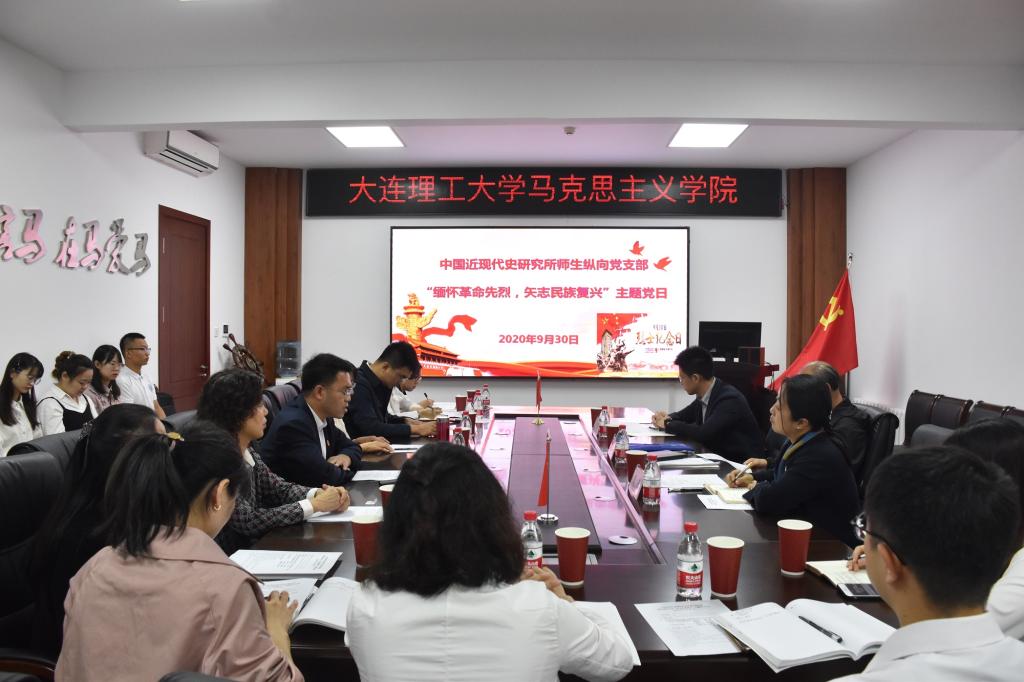为进一步加强支部党员队伍建设,推进革命精神学习的常态化,9月30日上午9时,在祖国71岁生日即将到来之际,大连理工大学马克思主义学院中国近代史研究所师生纵向党支部开展了“缅怀革命先烈,矢志民族复兴”主题党日活动。教育部直属高校党建工作联络员、东北大学原党委书记孙家学莅临指导。大连理工大学党委组织部副部长戴磊、党委组织员赵显嵩、马克思主义学院党委书记陈晓晖、党委副书记张新奎以及支部全体师生党员参加活动。此次活动由马克思主义学院中国近代史研究所师生纵向党支部书记屈宏主持。
