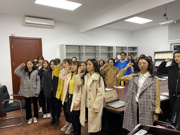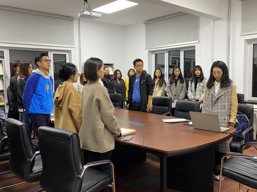 根据党支部发展党员工作计划,经上级党委预审同意,2020年10月23日晚19时马克思主义学院硕士生第一党支部在马院323会议室召开了预备党员接收大会,讨论接收李蒙琴、褚静茹、车海肖、林雪婷、贾傲桦、秦泽淼、窦珊珊、刘锡明、孙洁、郭婉莹十名发展对象为中共预备党员。参加此次大会的有马克思主义学院党委书记陈晓晖老师以及马克思主义学院硕士生第一党支部成员。会议由硕士生第一党支部书记帅欢主持。