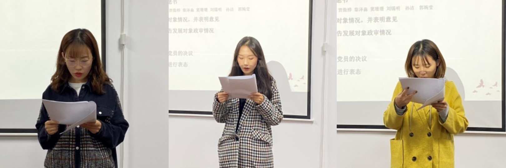 本次会议共分为七项议程:首先由李蒙琴等十名发展对象宣读入党志愿书,汇报自己对党的认识,陈述入党动机、自身表现以及需要向党组织说明的其他问题。