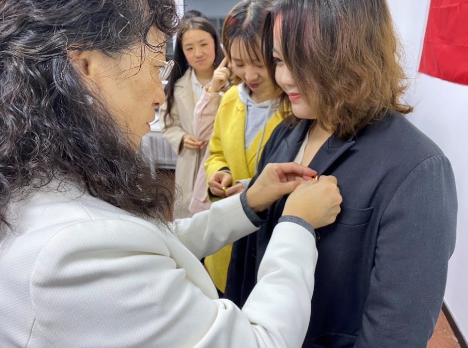 十位同志进行了表态性发言,他们分别就自身存在的不足,明确了努力方向,并表示将紧紧跟随党的领导,不断向优秀党员同志学习,戒骄戒躁,时刻以党员的标准严格要求自己,争取按期转正。陈晓晖书记为十名同志佩戴了党徽,之后全体与会党员面对党旗,庄严宣誓。这代表着十名同志从今日起将正式成为一名中共预备党员。