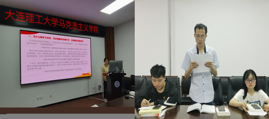 全体党员唱完《国际歌》之后,秦雪同志从“为什么要学党史?”、“党史学什么?”、“怎样学习党史?”三个方面做了题为《学好百年党史,砥砺初心使命--学习习近平总书记在党史教育动员大会上的重要讲话精神》的专题党课,从历史逻辑、理论逻辑与现实逻辑分别阐明了党史学习的重大意义、主要内容和实践路径。白冰同志作为本次主题党日活动的领学人,为在场党员细致讲解了《中国共产党简史》第五章、第六章内容,并与各位党员分享了自己学习党史的经历和体会,鼓励大家要带着问题意识去研读党史,牢固树立正确的党史观。王宁、崔柏慧、张帅、周文康等同志就白冰副书记所讲内容展开讨论,并结合自身经验分享了对这两章内容的见解。