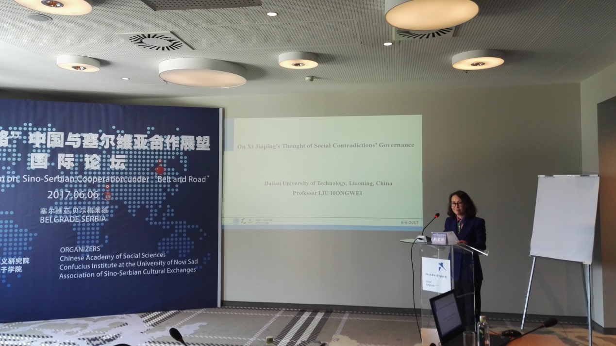 Professor Liu Hongwei, vice president of Marx School of Dalian University of Technology, delivered a speech entitled "Xi Jinping's view on social contradictions governance" at the meeting. He explained the core content of Xi Jinping's social contradiction governance from five aspects: logical starting point, value orientation, fundamental principle, advancing the way of thinking and world significance. It provides an important theoretical reference for the governance of social conflicts between China and Serbia. The speech was highly recognized by the scholars attending the meeting and triggered a heated discussion.